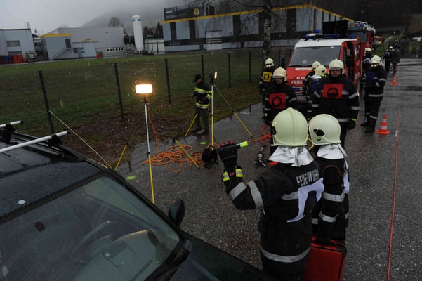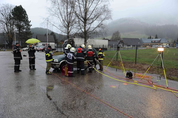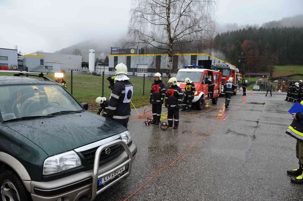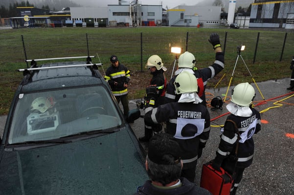 Dazu wird ein PKW-Unfall mit eingeklemmten Person simuliert.
