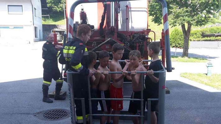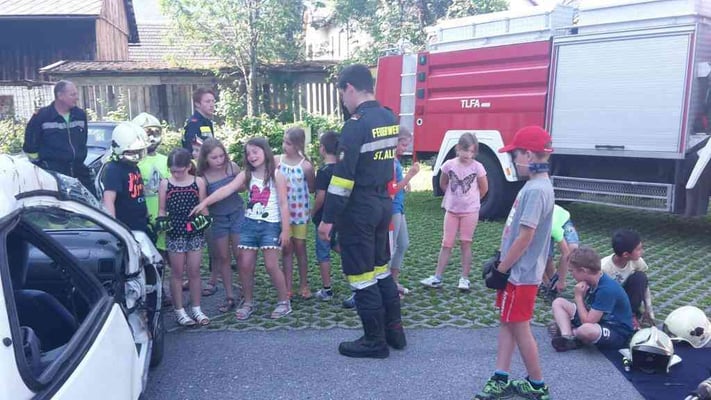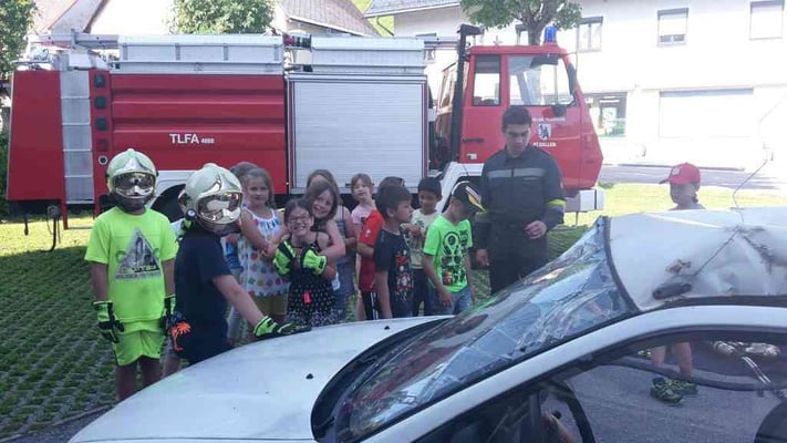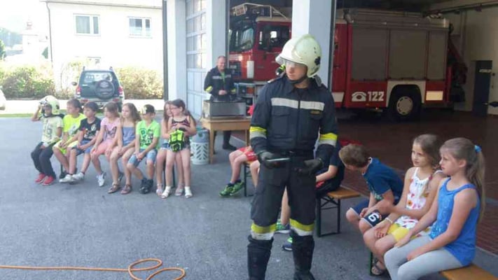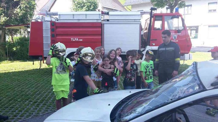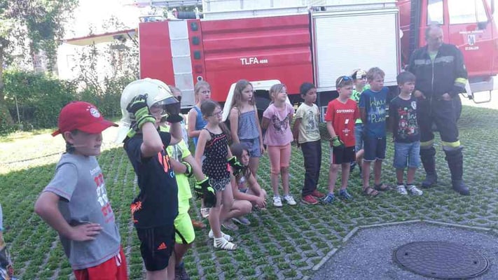 Am 24. Juni 2016 besuchte uns die 3. Klasse der Volksschule St. Gallen im Rüsthaus. Jede Menge spannende Aufgaben wurden von uns vorbereitet und bei schönstem Wetter durchgeführt. Eine deftige Stärkung darf bei einem Besuch bei der Feuerwehr nicht fehlen, so wurde nach getaner Arbeit gemeinsam gegrillt. Wir freuen uns immer wieder über die begeisterten Blicke der Kinder und über das große Interesse für die Feuerwehr!